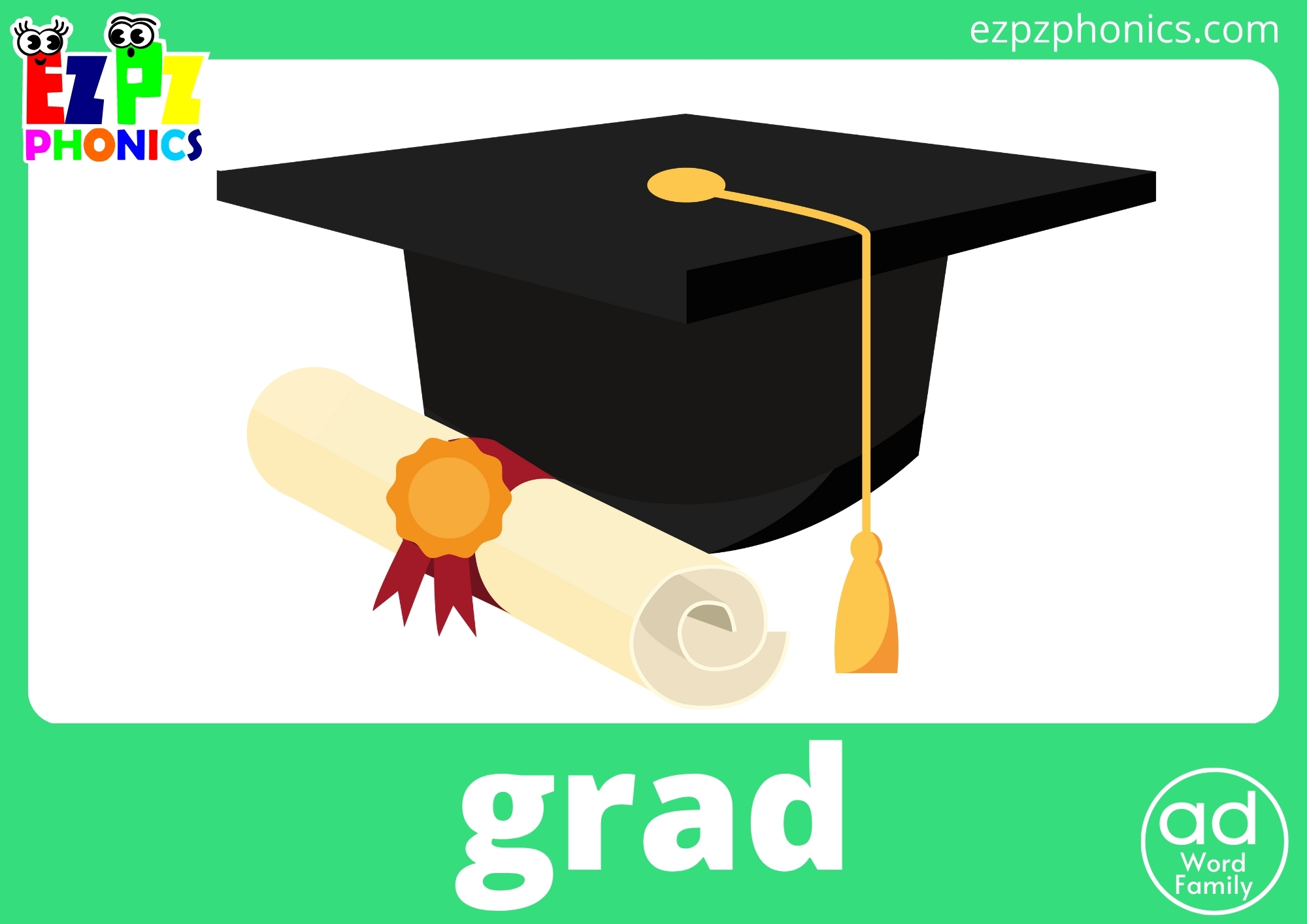 Contains 8 Cards: glad, dad, bad, pad, grad, lad, mad, sad