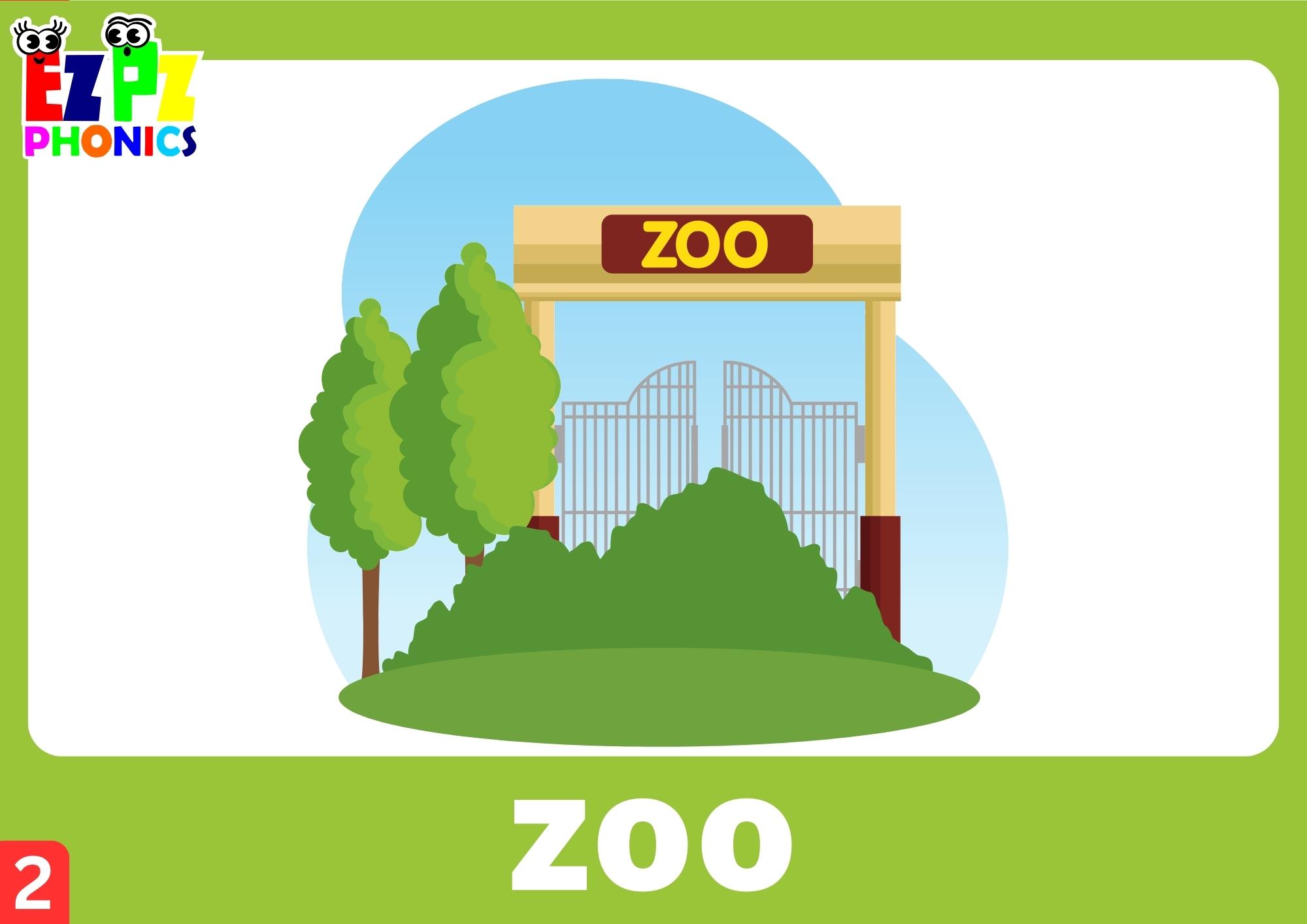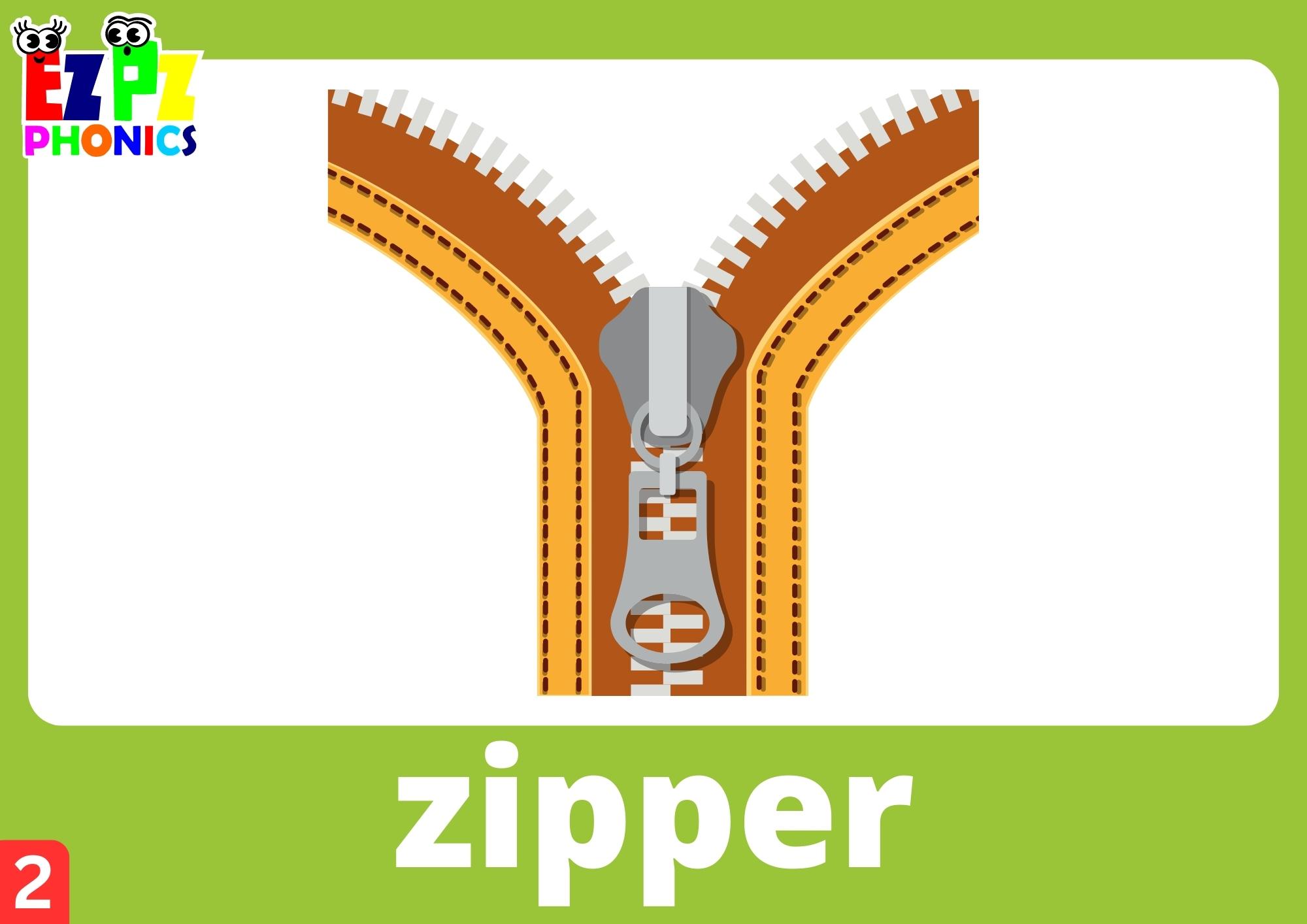 Letter Zz Words Phonics Flashcards with Images and Words