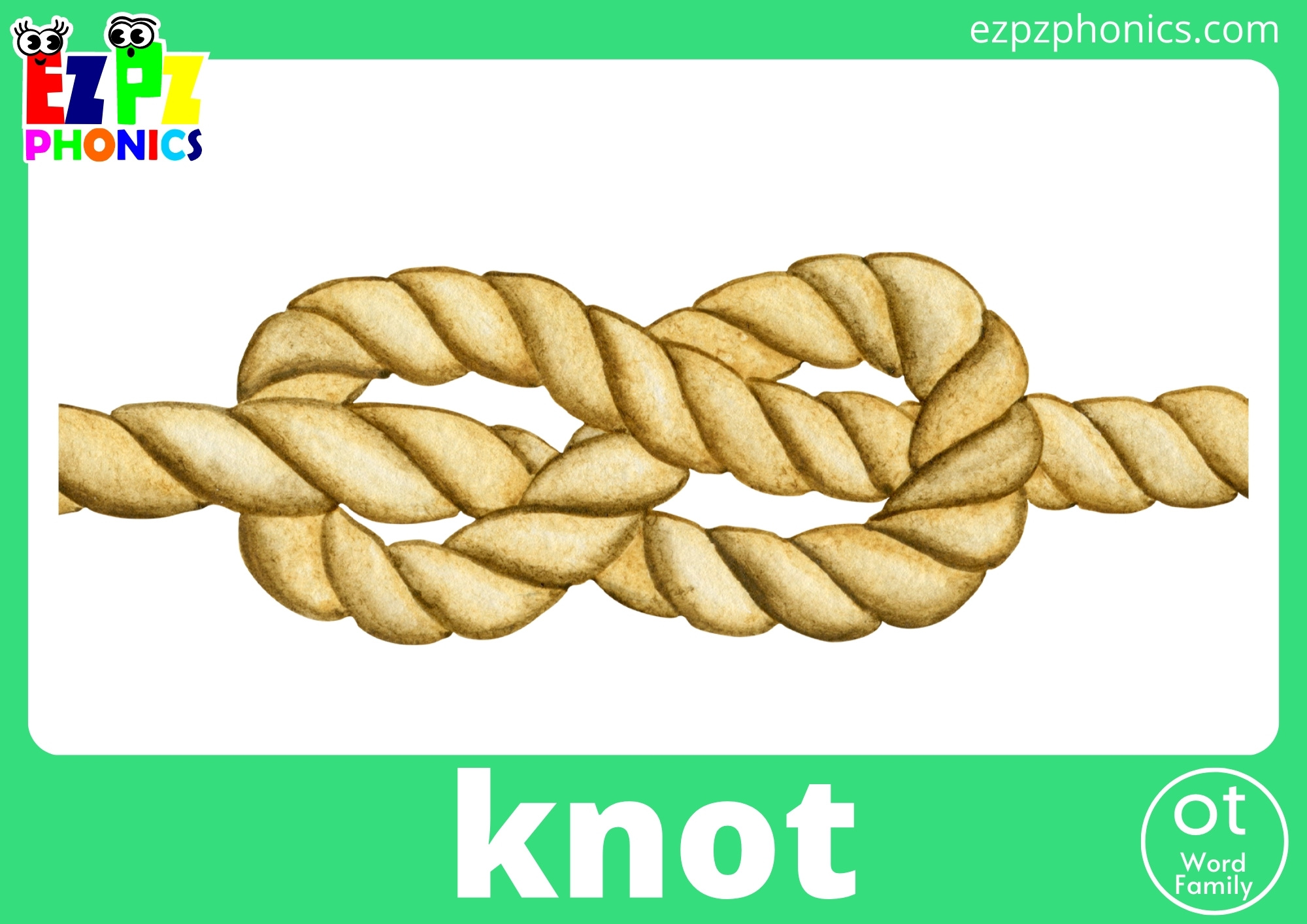 Contains 8 Cards: hot, pot, knot, dot, jot, cot, not, rot