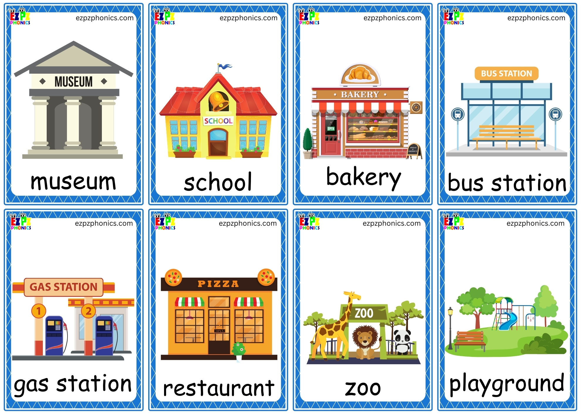 Places in the City My First English Words - Mini Flashcards/Game Cards (Free PDF Download)