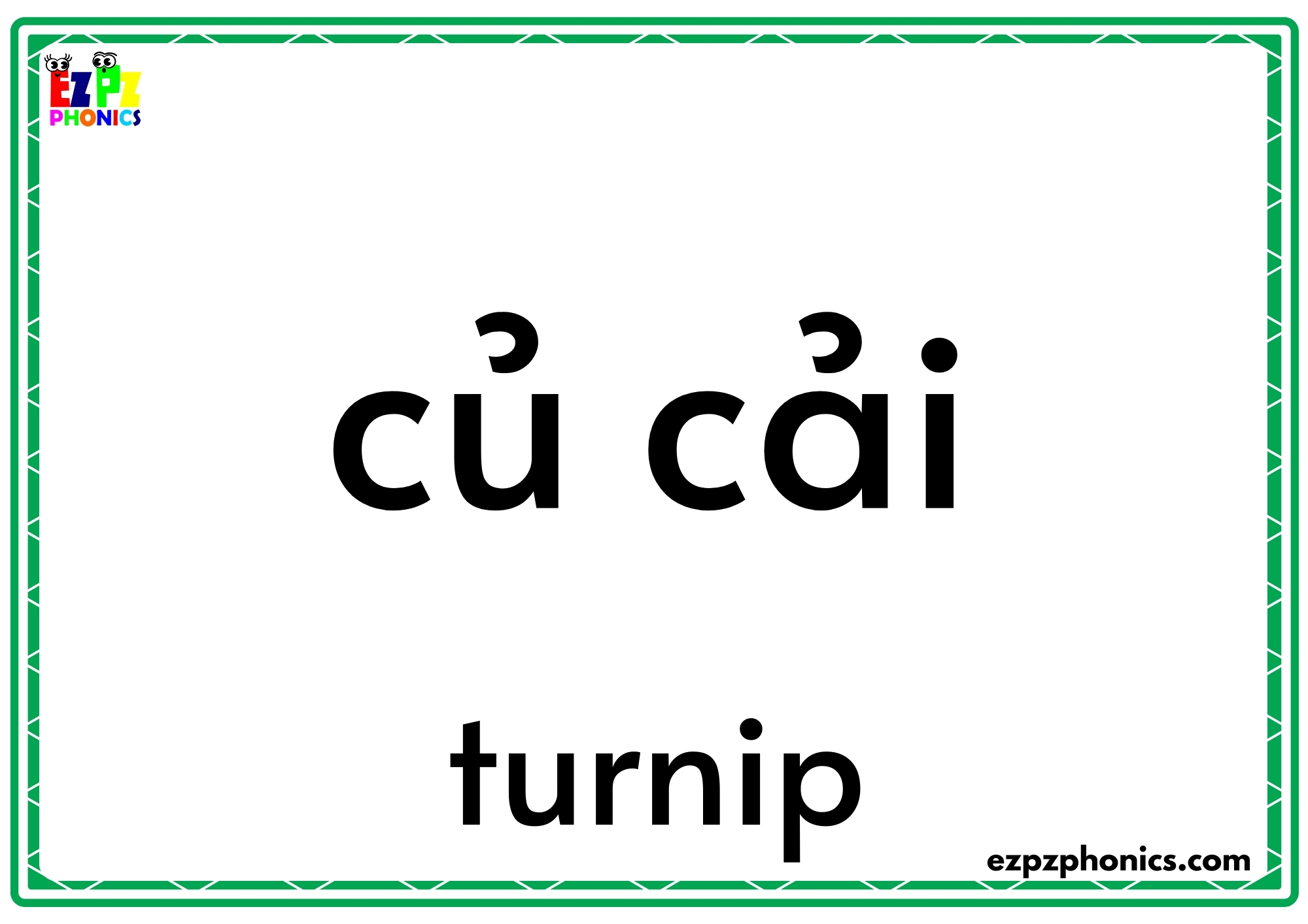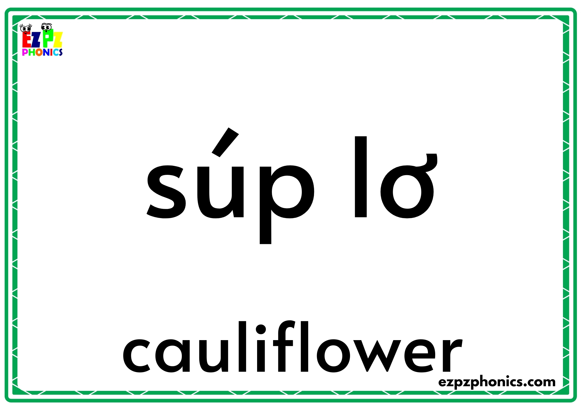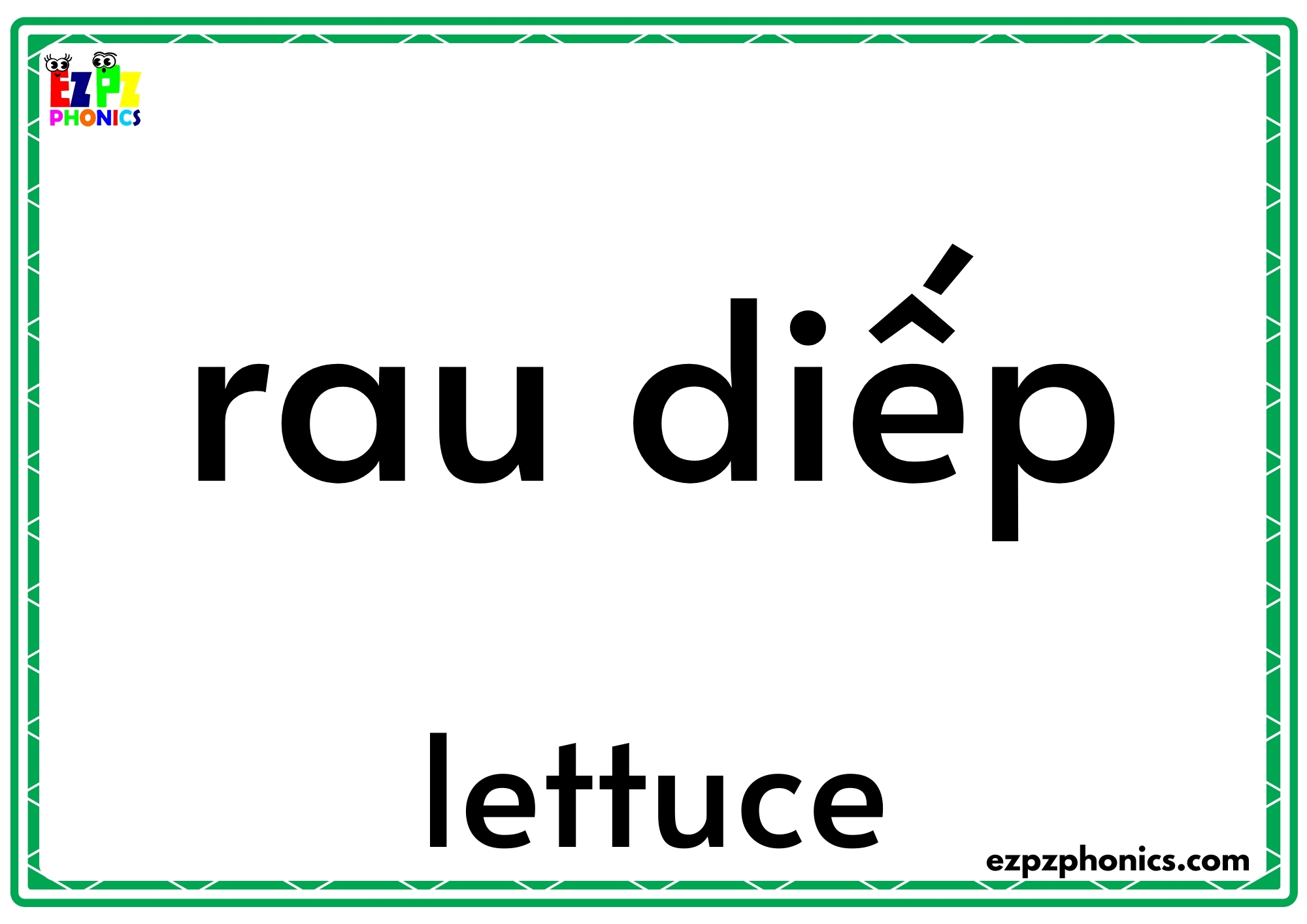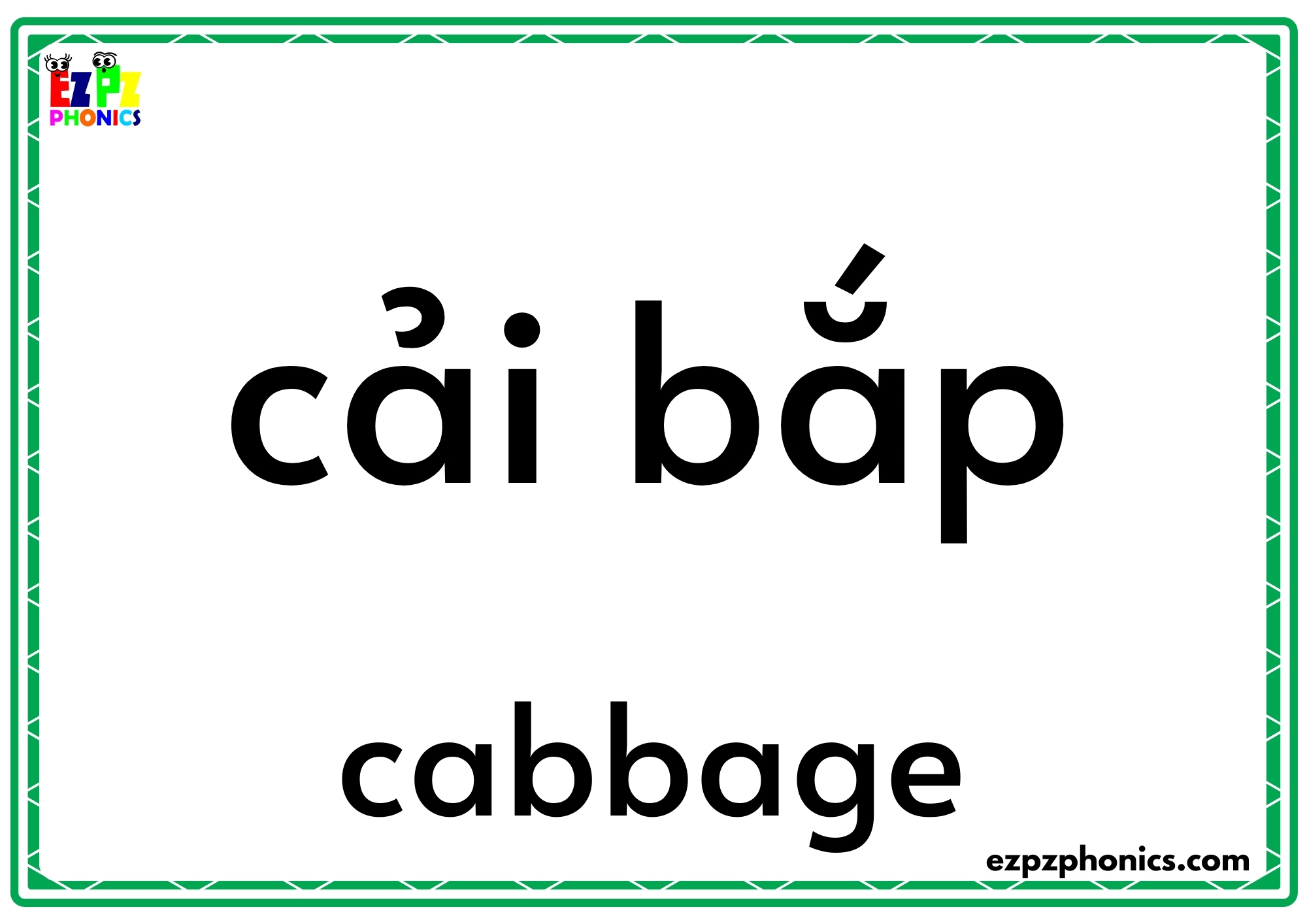 - 📖 Words on the Back: The reverse side includes the vegetable's name in Vietnamese and its English translation for easy comprehension.