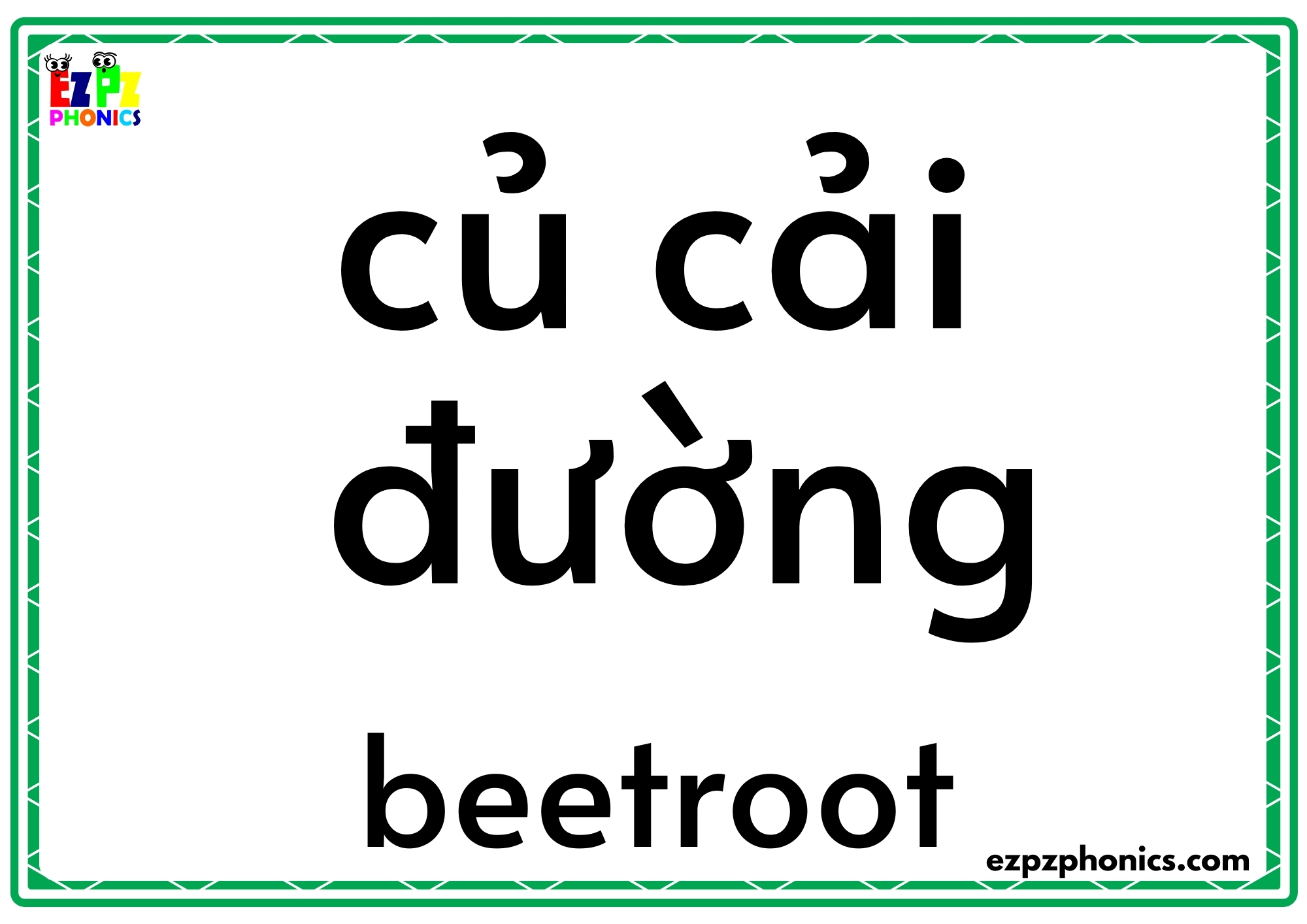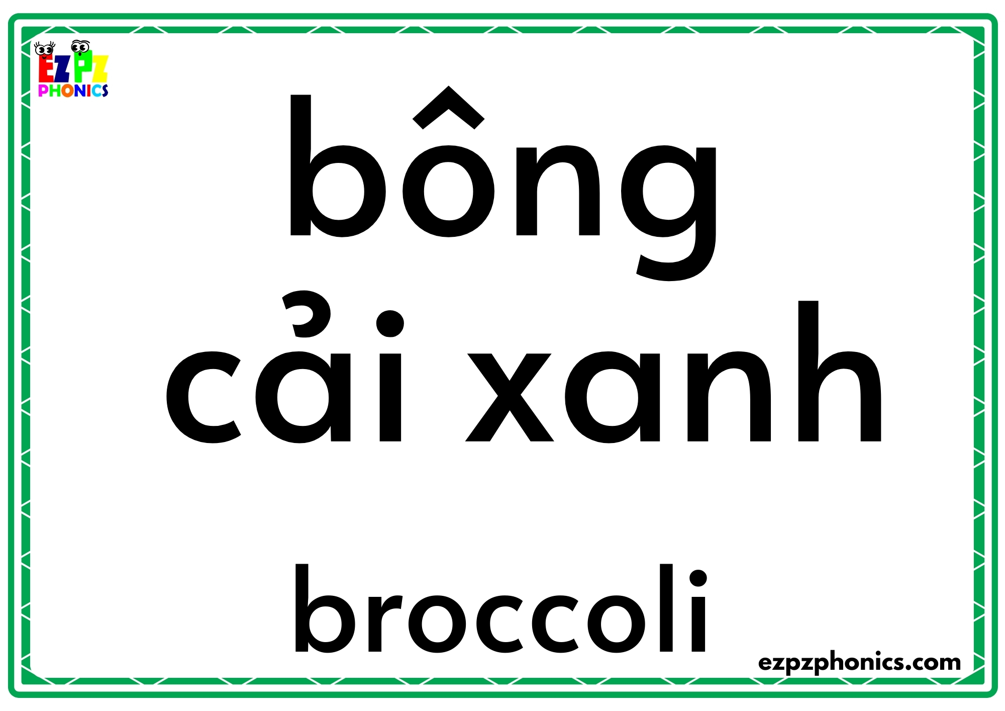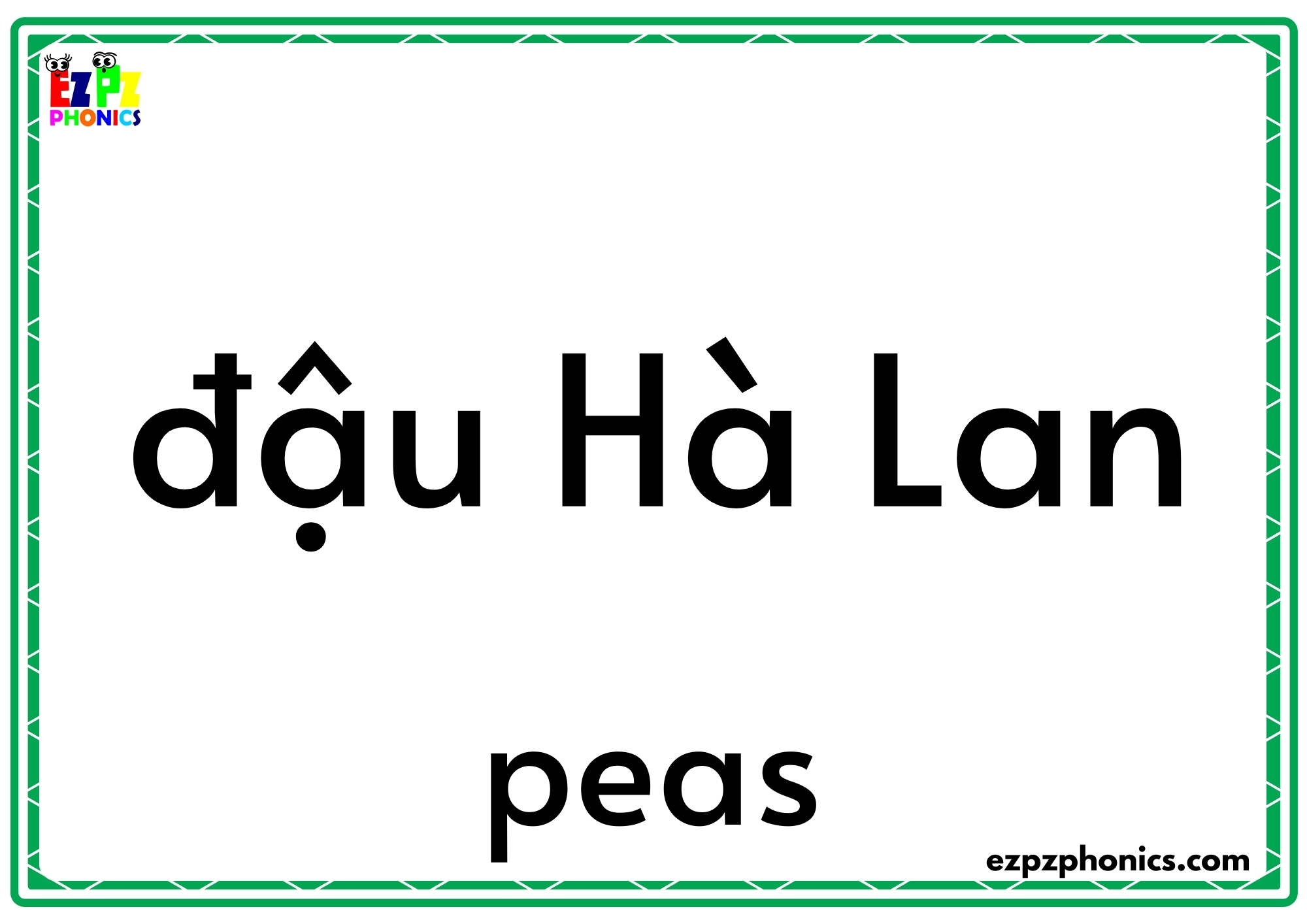 - 📖 Words on the Back: The reverse side includes the vegetable's name in Vietnamese and its English translation for easy comprehension.