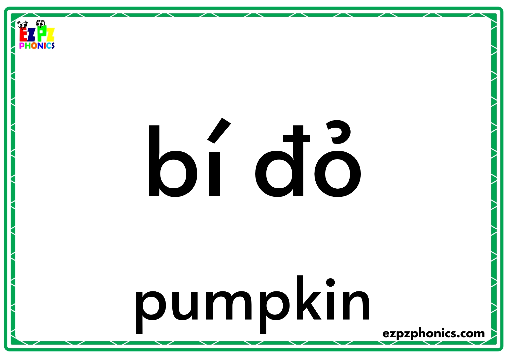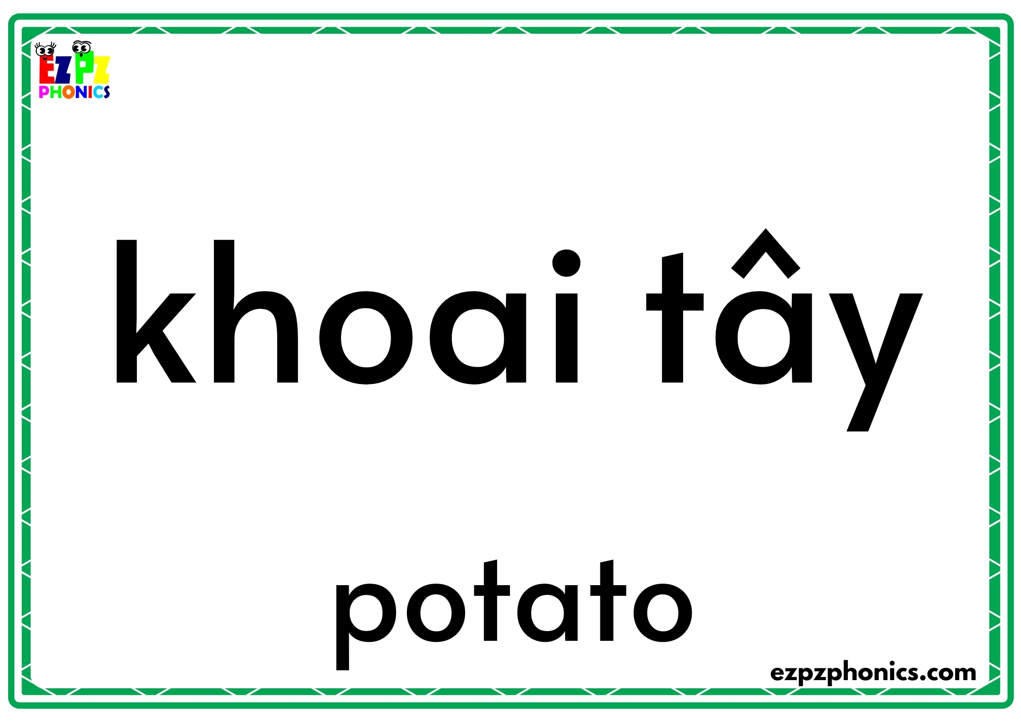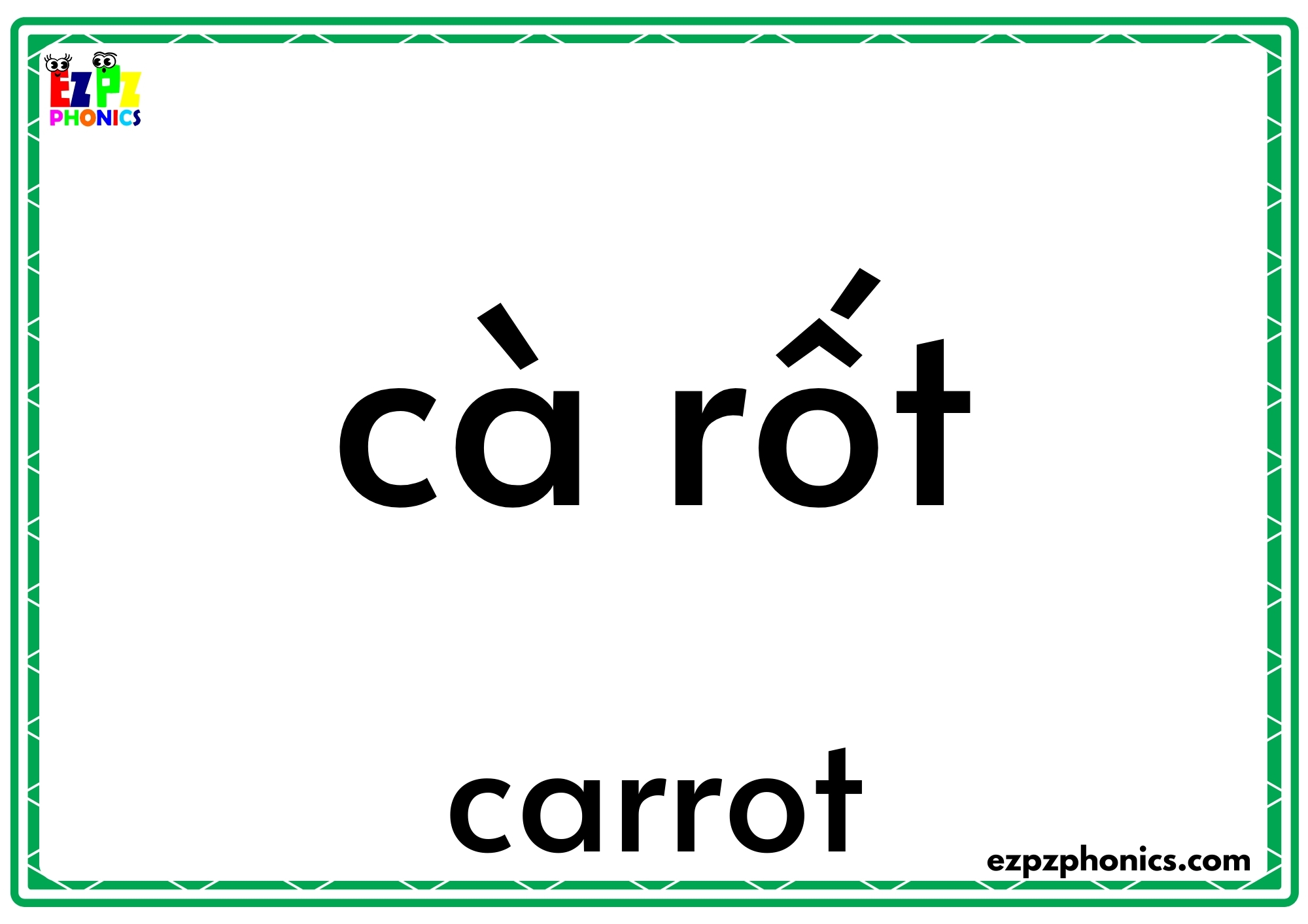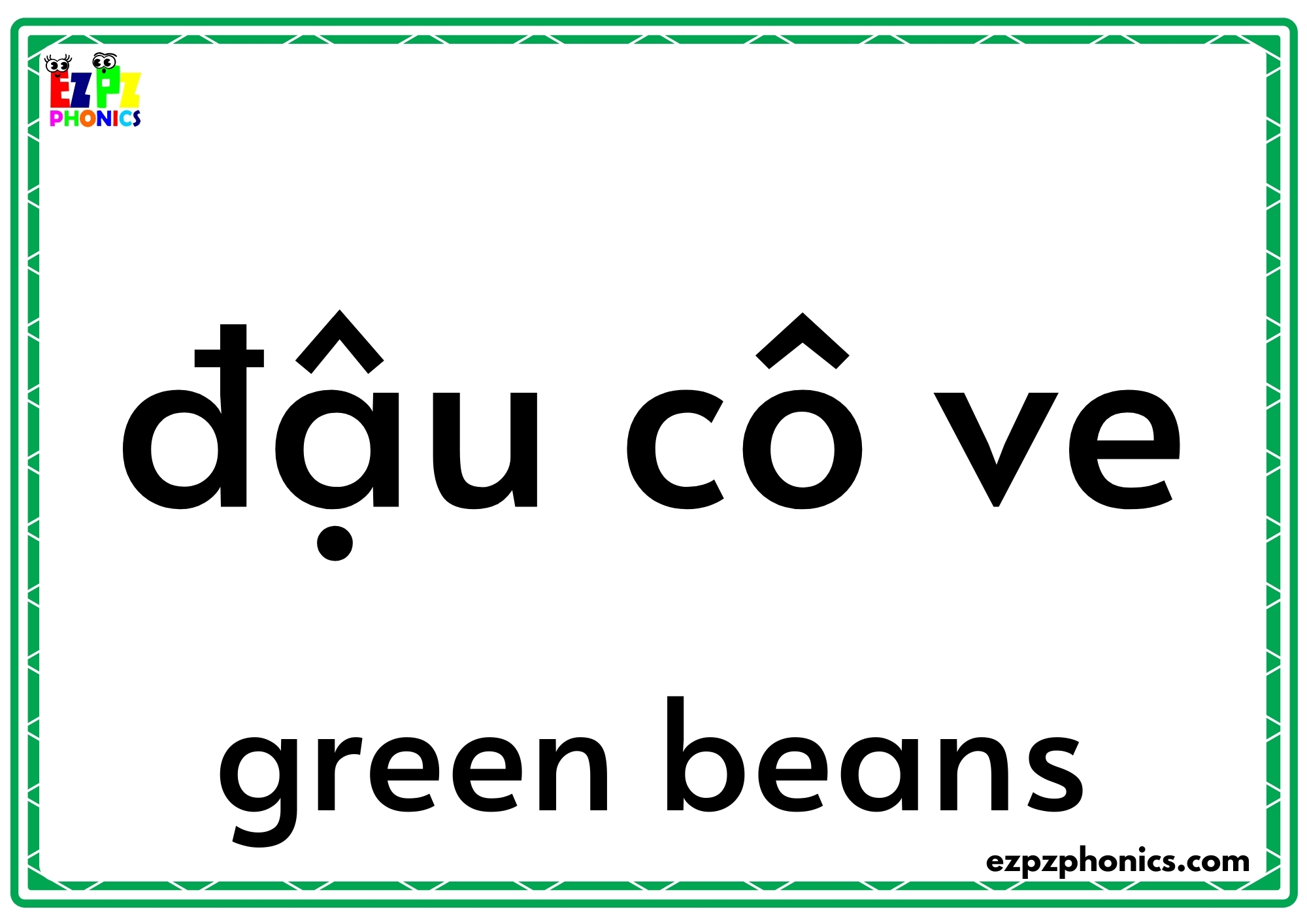 - 📖 Words on the Back: The reverse side includes the vegetable's name in Vietnamese and its English translation for easy comprehension.