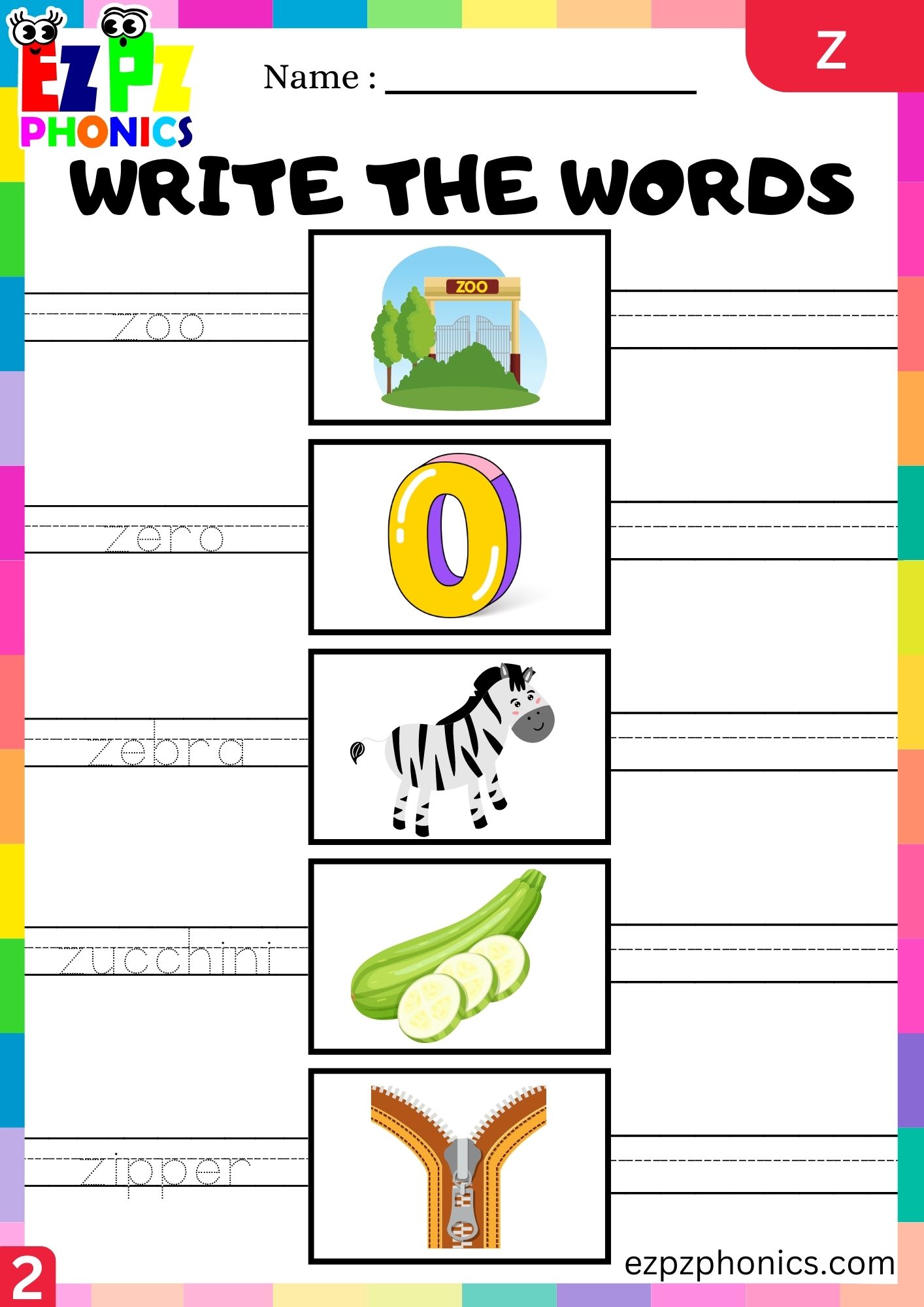 Letter z Write the Words Phonics Activity Group 2